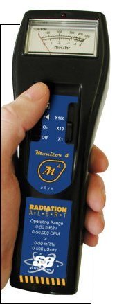 Monitor 4 is a compact, general purpose radioactivity survey meters capable of detecting alpha, beta, gamma, and x-rays over 3 selectable ranges. The switchable operating range is an especially nice feature if you are dealing with low levels of radioactivity - you can set it to the most sensitive operating range so the meter is easier to read, i.e. the needle will "jump" that much farther for the same level of radioactivity.